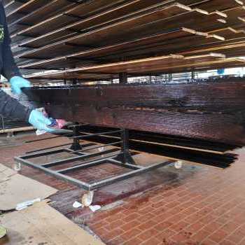 Il nostro principale fornitore ci ha spiegato che nella scelta delle piante destinate a questo progetto di Yakisugi-Ita distribuito in tutta Europa dal suo magazzino centralizzato, attinge solo dai tronchi più grandi che minimizzino gli sprechi da taglio radiale, così da sfruttare ogni parte della pianta per usi alternativi al tavolame da larice carbonizzato.